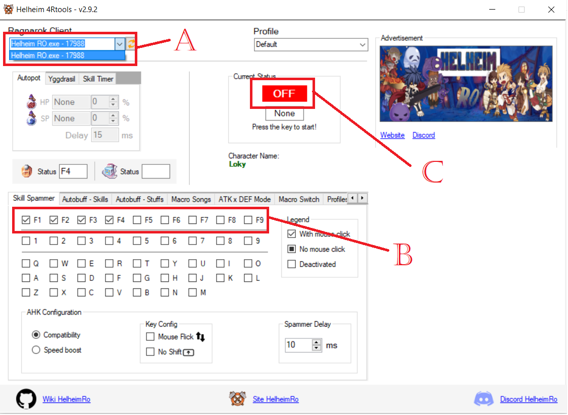 B: Set up your hotkeys (multiple options available: F1 to F9, 1 to 9, keyboard).